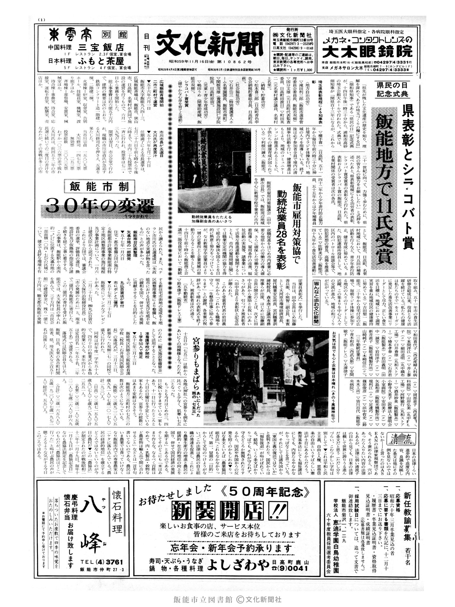 文化新聞 昭和59年11月03週 1984年11月11日発行