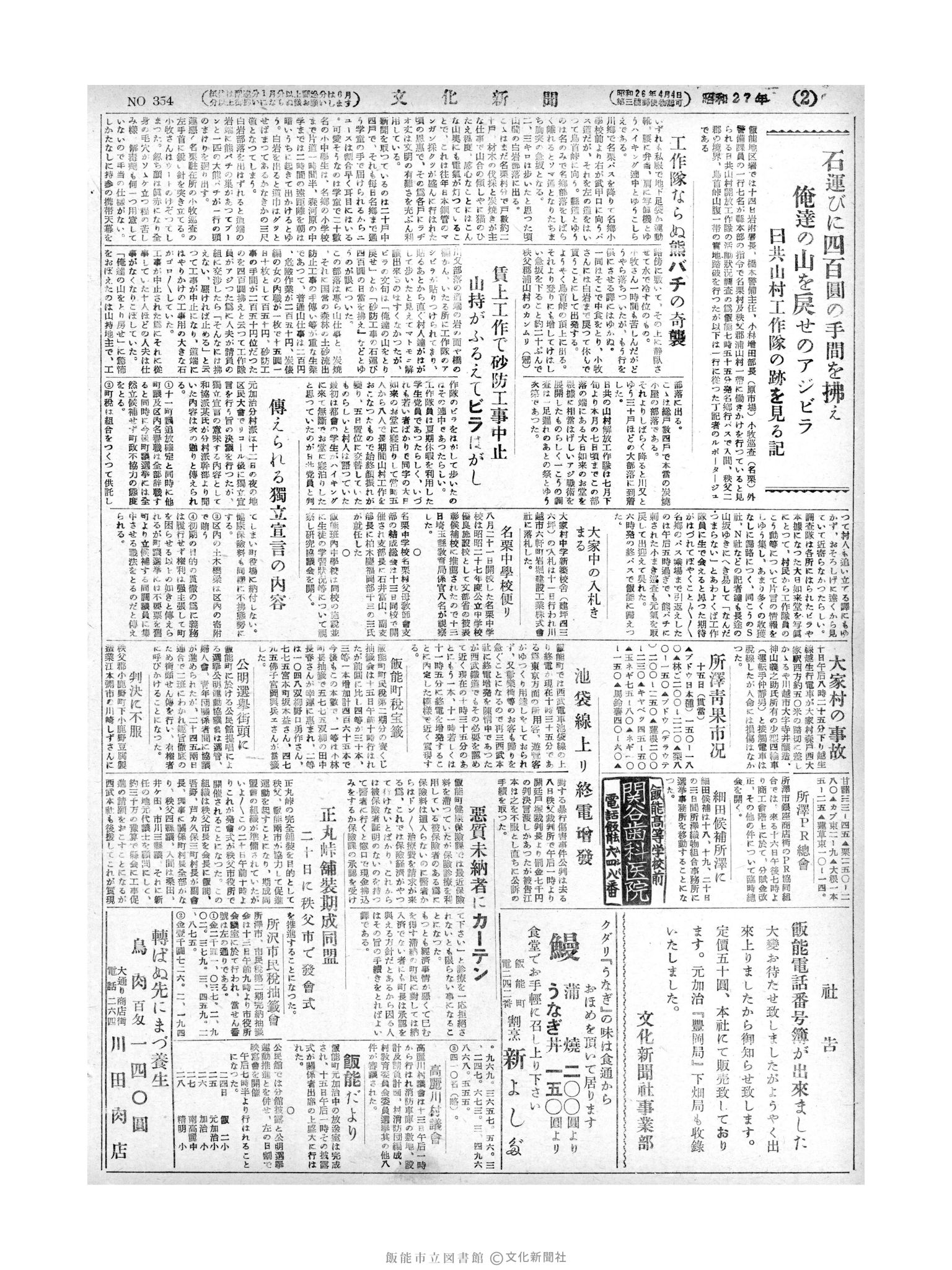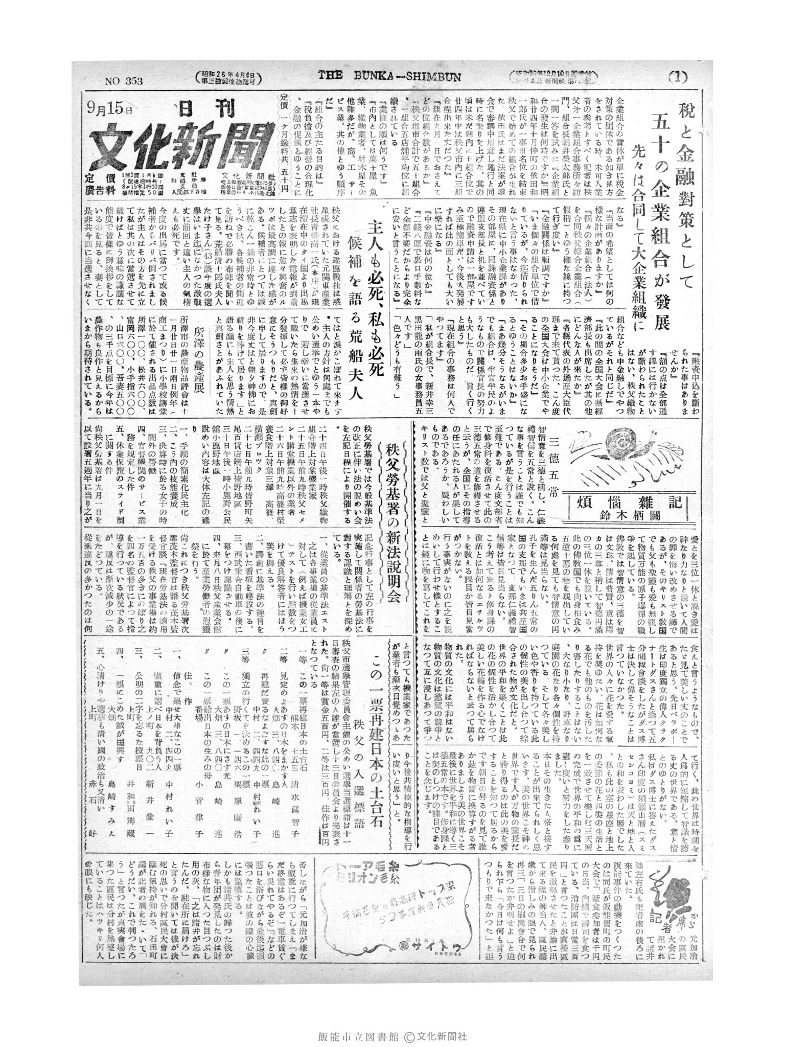 文化新聞 昭和27年09月03週